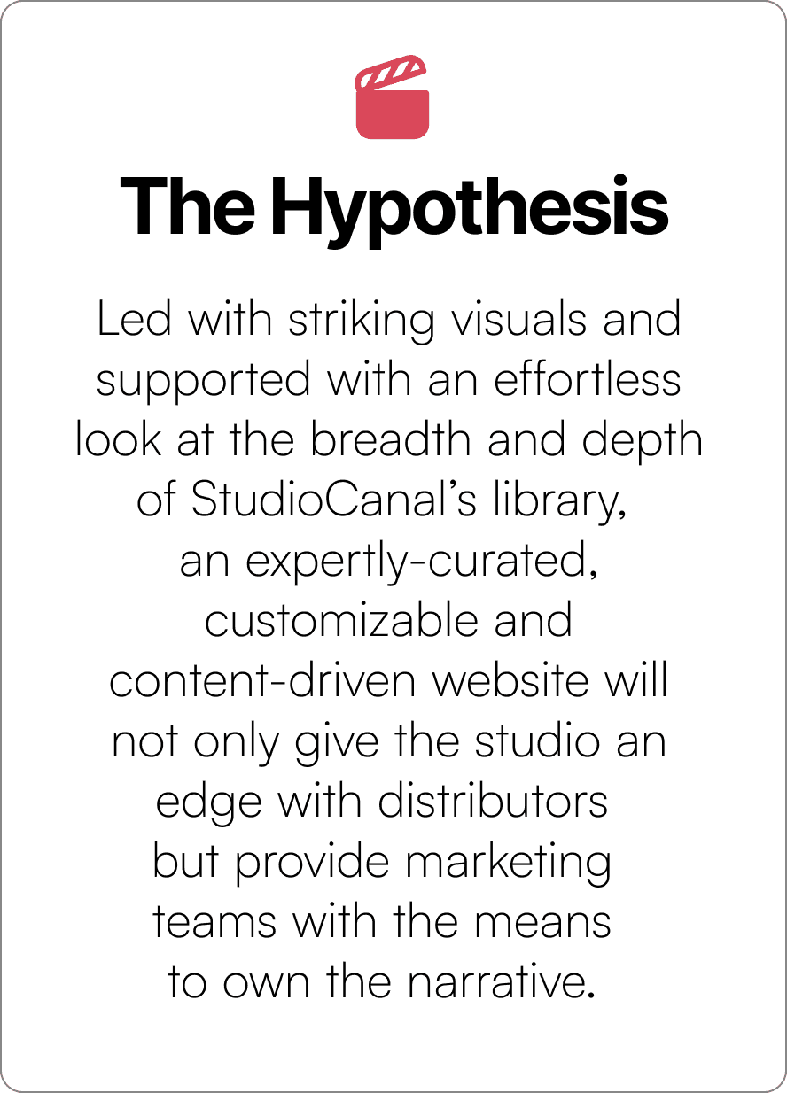 Growing exponentially in both stature and reputation, Studiocanal needed a way to connect with talent and distributors (especially in the US market) by showcasing the breadth of its activities and its world-class content library, while simultaneously enabling teams to craft communications and advance business objectives in a customizable way.